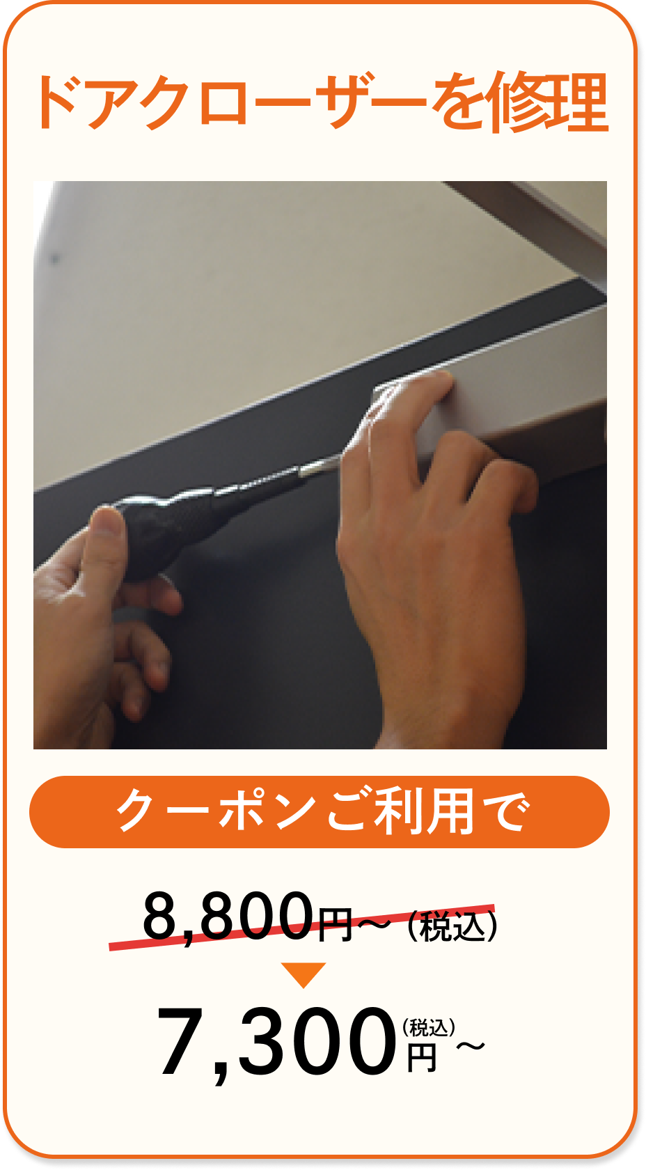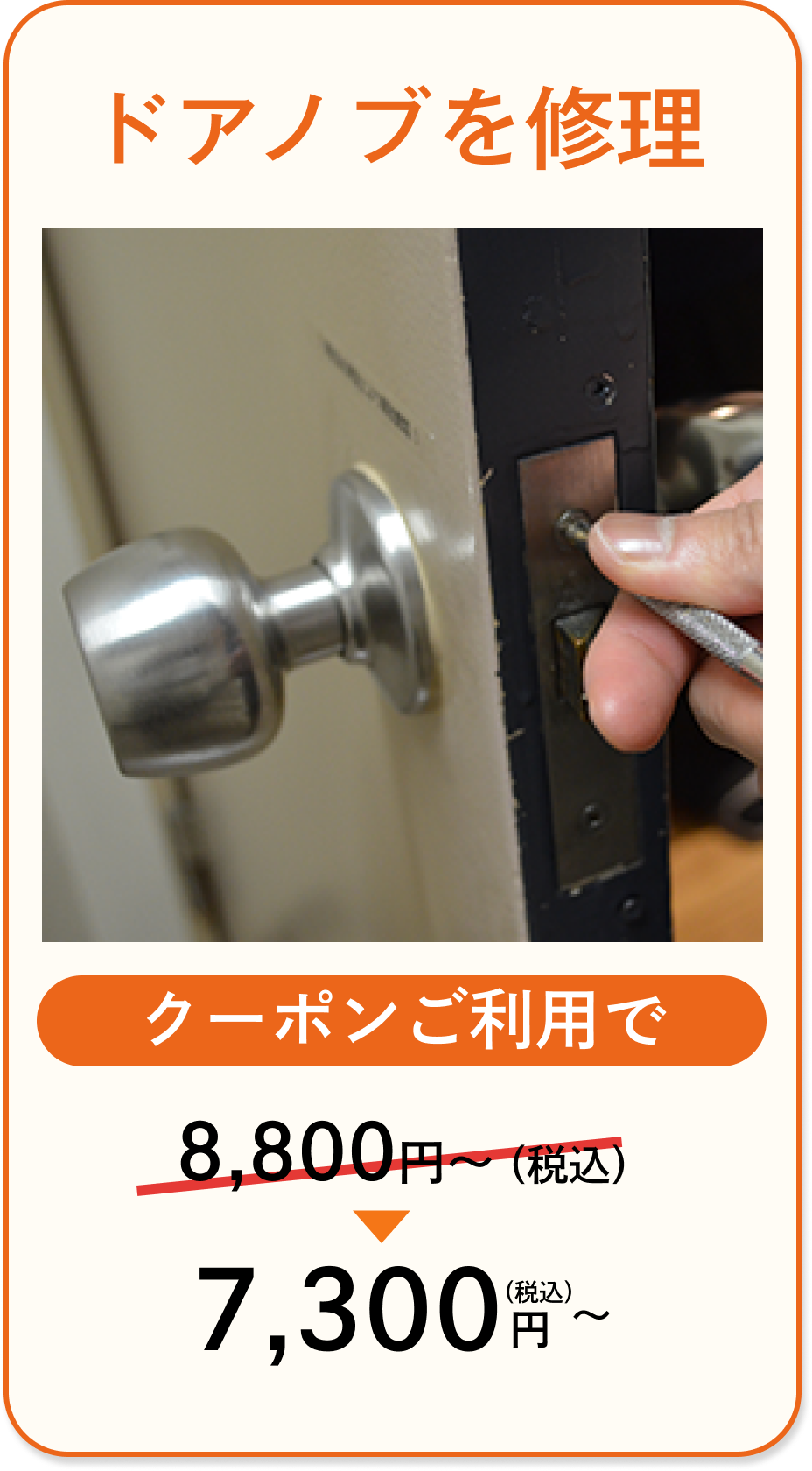 - 鍵・錠前・扉などの種類や作業状況により価格が異なる場合がございます。正確な見積もりは現場の状況を確認後、サービススタッフよりご提示させて頂きます。